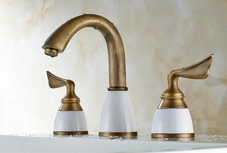 贅沢な洗面器の蛇口8インチの水道水栓真ちゅうセラミック&ダイヤモンドの浴室の蛇口アンティークの広範囲にわたる洗面器の流しの蛇口